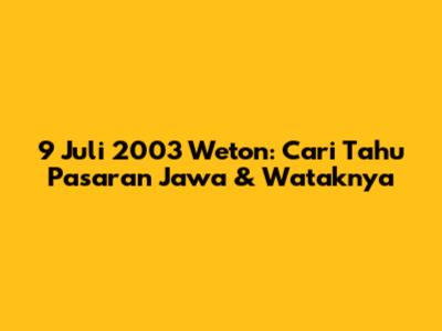 9 Juli 2003 Weton: Cari Tahu Pasaran Jawa & Wataknya